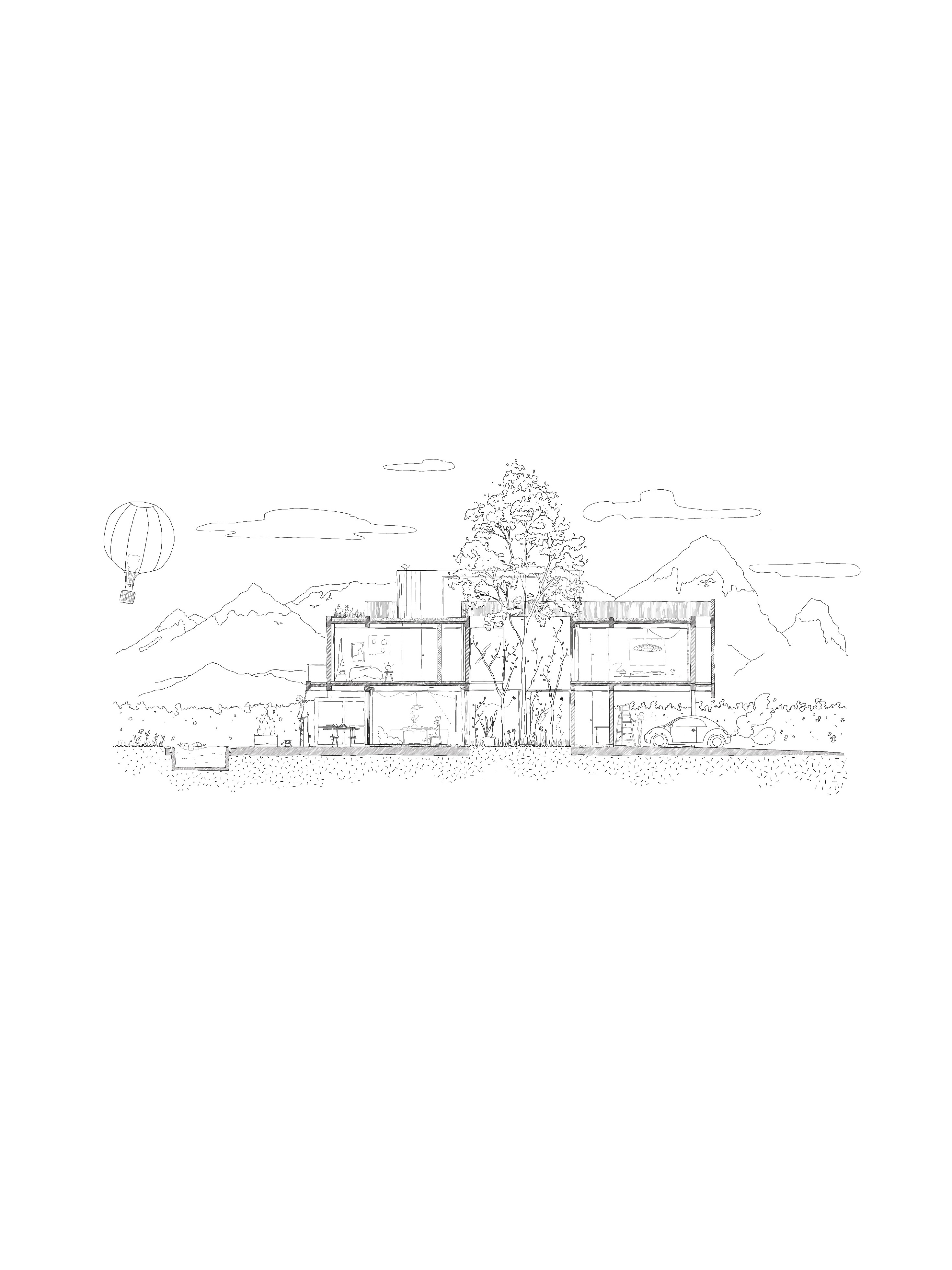 Ubicada en el barrio privado Las Jarillas, dentro de Palmares Valley, Mendoza, esta vivienda busca integrarse en armonía con la naturaleza, promoviendo la presencia constante de espacios verdes.